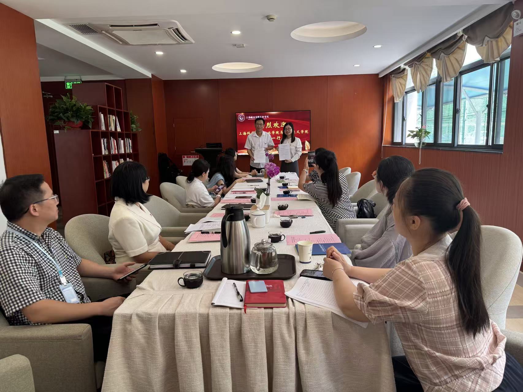 随后进行“习近平总书记考察上海重要讲话精神”专题学习,由教学研究部支部党员于丽丽主讲。学习结束后,双方展开经验交流。顾玲琍着重介绍了教学研究部党支部“四链联动”的探索实践,分享了党支部近年来创建“上海市科技系统先进基层党组织”“党支部建设示范点”等成功经验。座谈中,双方分别介绍党支部在组织建设、课程教学与科研服务中的经验做法,就课程教学协同、学术研究合作、干部培训资源共享等议题深入交流,达成以共建促发展的共识。