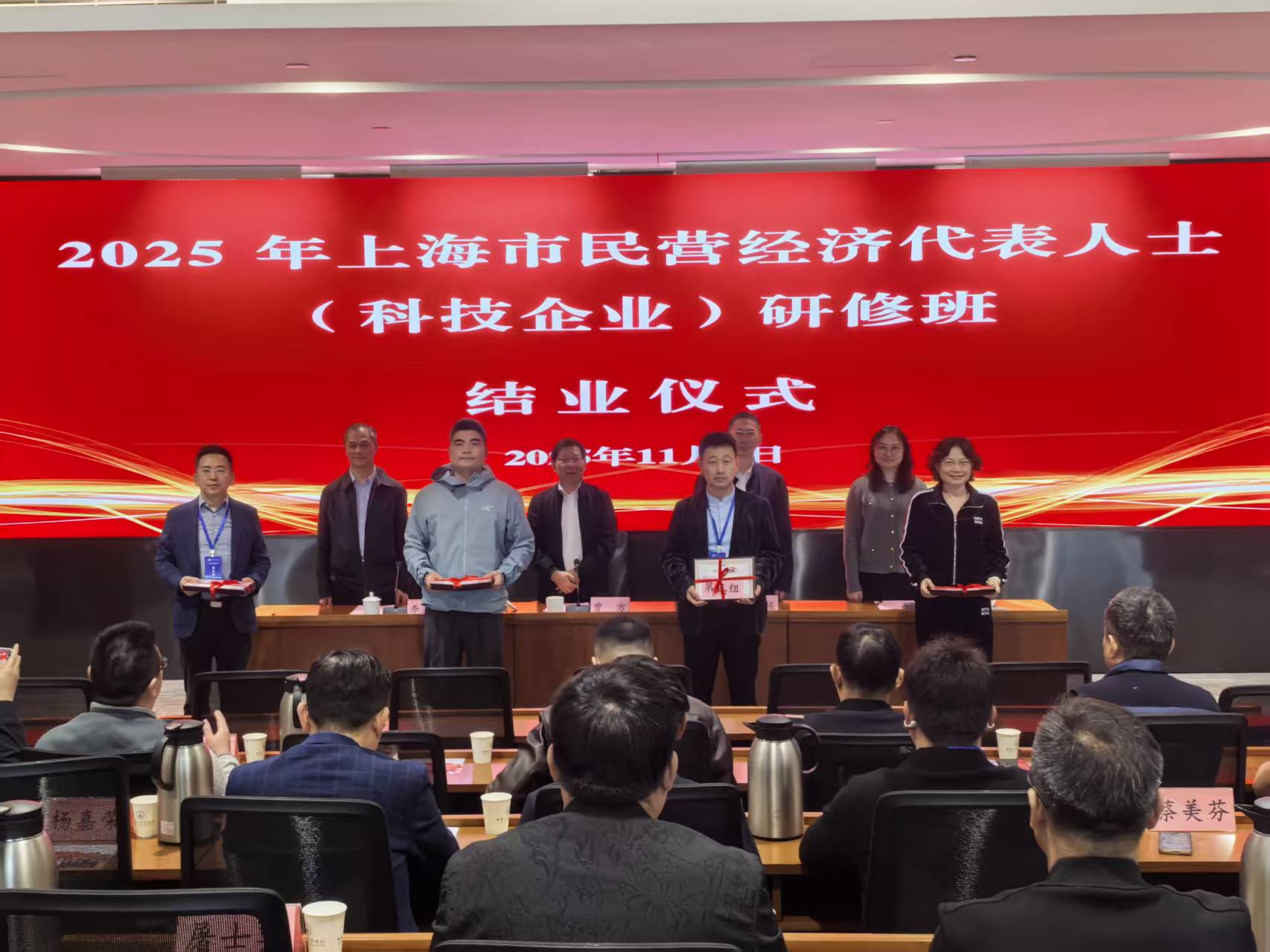 为深入贯彻落实习近平总书记关于民营经济发展的重要论述和考察上海重要讲话精神,助力科技型民营企业把握新质生产力发展机遇,10月29日至11月4日,由市委统战部主办的“2025年上海市民营经济代表人士(科技企业)研修班”在学院举办。市工商联党组成员、副主席封丹华、学院党委书记李敏出席开班式。学院党委副书记、院长曾方出席结业式。