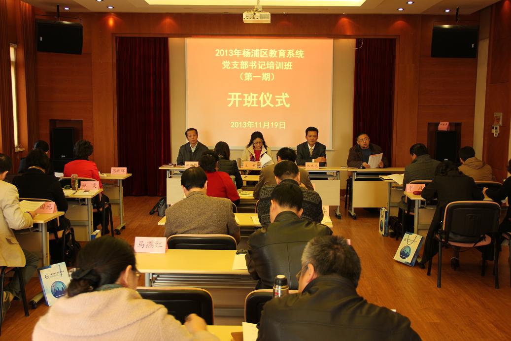 受上海市杨浦区教育局干训部委托,我院于11月19日至23日举办了2013年杨浦区教育系统党支部书记培训班(第一期),本期培训班学员共30人,来自杨浦区控江中学、同济一附中、市东中学等30家高中的党支部书记。开班仪式上,杨浦区教育局党委书记王芳同志、组织科科长徐佑翔同志、干训部主任许坚同志分别作了发言并布置了教学任务。
