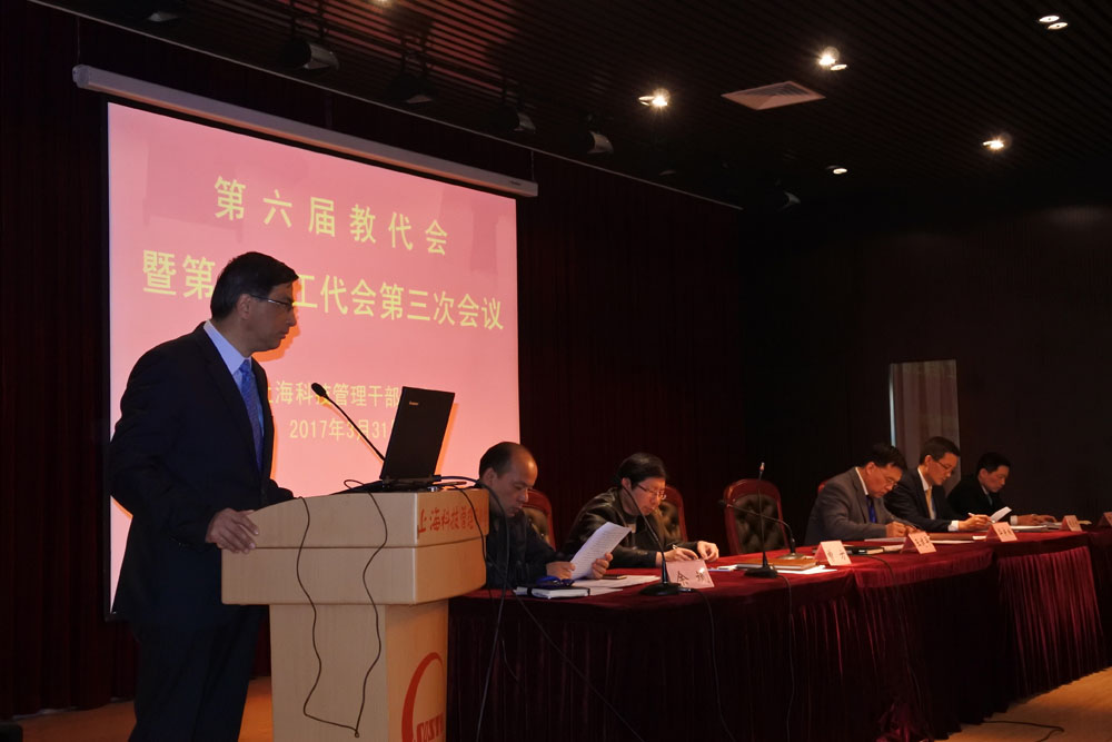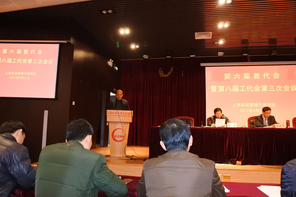 大会在完成各项议程后,举手表决一致通过第六届教代会暨第八届工代会第三次会议决议:会议号召全院教职工在学院党委的领导下,深入贯彻党的十八大和十八届三中、四中、五中、六中全会和习近平总书记系列重要讲话精神,围绕上海建设具有全球影响力的科技创新中心战略目标,找准定位、夯实主业,加强内涵建设,深化转型发展;开拓创新,求真务实,锐意进取,凝心聚力,勤奋工作,为实现十三五战略目标和学院的持续稳定、和谐发展做出贡献,以优异的成绩迎接党的十九大的顺利召开! (文/余斌 图/唐云 苏健)