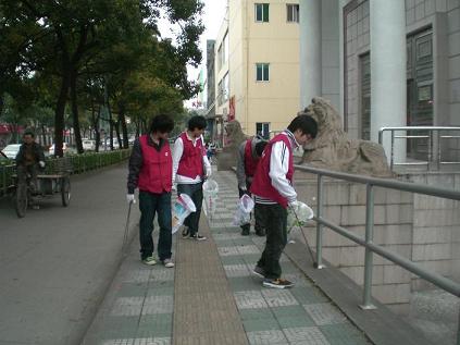 上星期,该系又率先承担每天1530~1700时段内,在城中路(南门桥堍起)东侧及沙霞路南侧(至博乐路)路段进行保洁的任务,这项工作将持续到上海世博会结束。信息系经各班动员,所有学生都排进了执勤安排表,做到人人参与志愿活动,用自己的实际行动兑现横幅签名的承诺:保护地球、爱护环境----从你我做起,从身边小事做起。 (信息系)